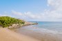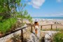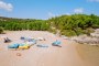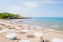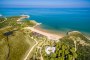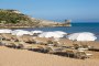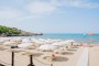 La baia privata di sabbia fine, lunga oltre 300 mt, con fondale dolcemente digradante e insignita della Bandiera Blu 2024, dista da 10 a 500 mt massimo dalle camere, a seconda della sistemazione scelta. La spiaggia, attrezzata con ombrelloni e lettini, è raggiungibile comodamente a piedi attraverso un percorso interno alla struttura. Area riservata con letti a baldacchino e servizio bar “sotto l’ombrellone” per gli ospiti delle Suite.