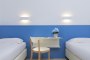 Le camere nel corpo centrale, arredate con cura in stile moderno, si suddividono in: Family room, composte da ingresso, camera matrimoniale e camera doppia. Sono situate al piano terra (family garden), fino a 4 posti letto, oppure ai piani superiori e in alcuni casi fino a 5 posti (divano letto singolo nella camera matrimoniale); Suite, fino a 5 posti letto, nel corpo centrale, composte da soggiorno con divano letto, camera matrimoniale e camera doppia. In camera ogni giorno frutta fresca, 2 cialde di caffè, bustine di tè, 1 bottiglia di acqua naturale e 1 frizzante e all'arrivo linea cortesia firmata; Suite panorama, fino a 4 posti letto, situata al terzo piano, con soggiorno, camera matrimoniale e camera doppia, ampia terrazza vista mare. In camera ogni giorno frutta fresca, due cialde di caffè, bustine di tè, una bottiglia di acqua naturale e una frizzante e all'arrivo linea cortesia firmata.